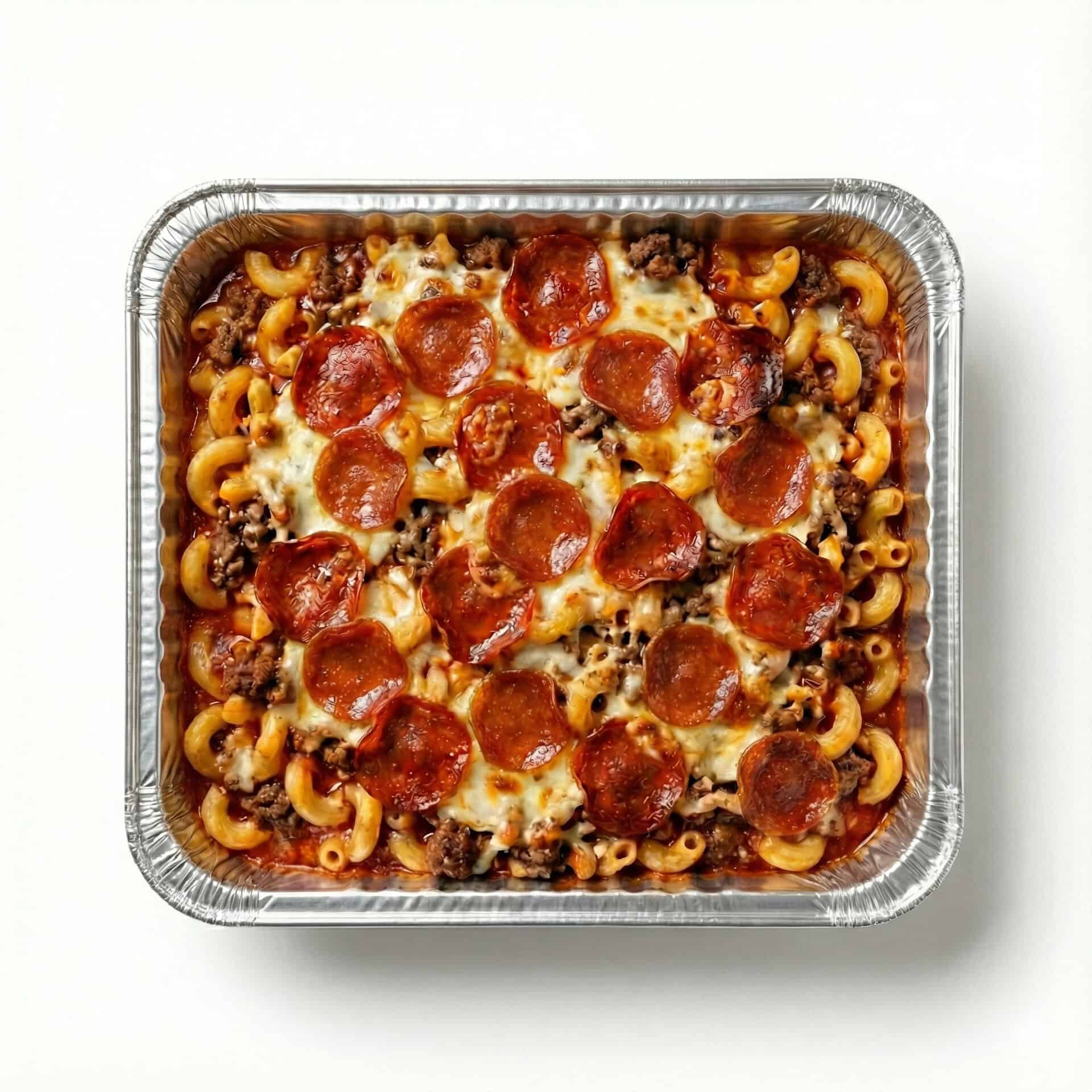 Feeds 4-6 people, which is perfect for family dinner or meal-prepping your week with something you’ll actually be excited to reheat. Fair warning: your kitchen’s going to smell like the inside of the world’s best pizza parlor, so maybe crack a window unless you want the neighbors showing up. That first bite, when you get pasta, beef, sauce, and crispy pepperoni all on one fork, is genuinely worth whatever chaos happened in your day.